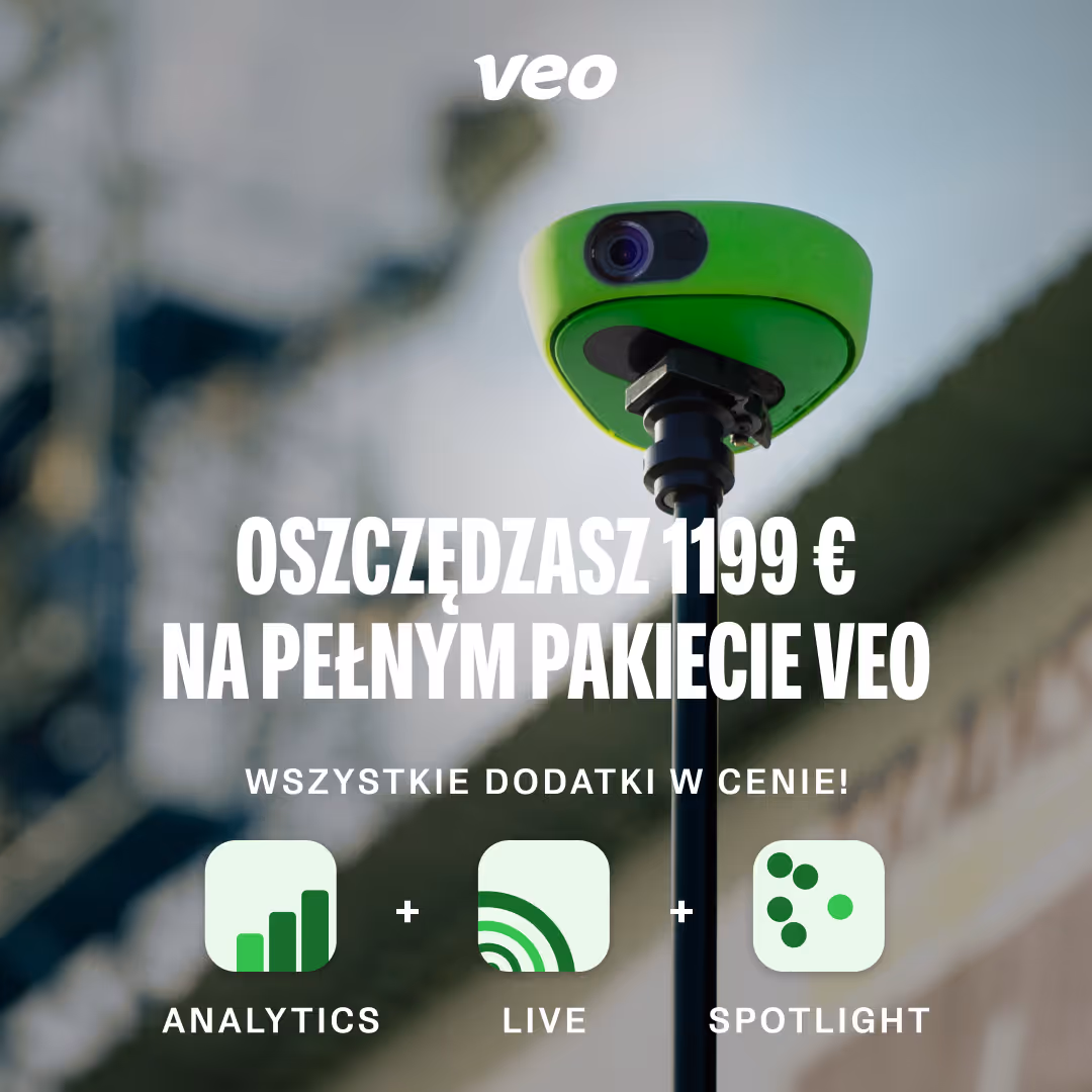 Niezależnie od tego, czy dopiero zaczynasz przygodę z Veo, czy planujesz modernizację, teraz możesz przenieść swoje mecze na wyższy poziom, korzystając z największej dotychczas zniżki!